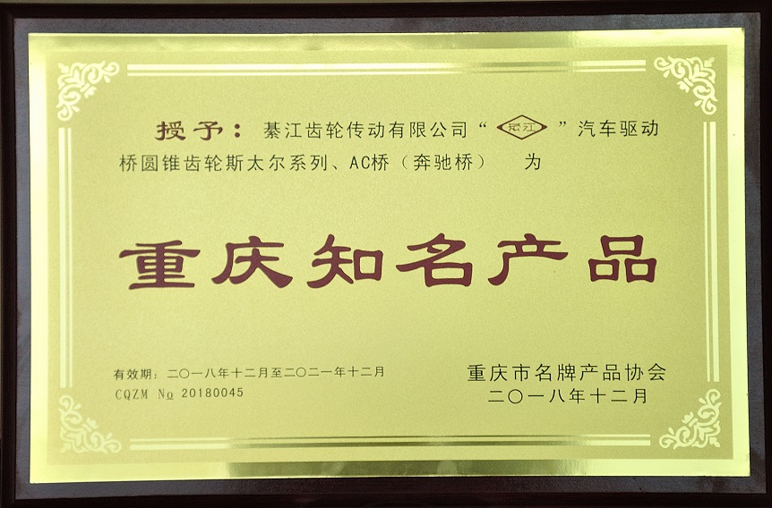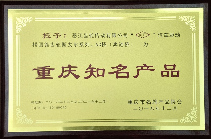 公司成立以來,榮獲了“國家零部件出口基地”、“中國100家最佳汽車零部件供應商”、“中國機械500強”、“中國齒輪行業優秀企業”、“重慶市重合同守信用單位”、“重慶市文明單位”、“重慶工業企業50強”、“重慶制造企業100強”等稱號。