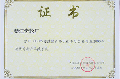 5月,綦齒研制的QJ805變速器獲重慶市優秀新產品;6月,獲齒輪行業2000年度新產品二等獎。12月21日,綦齒通過項目驗收,實現工藝設計和管理自動化。12月,全年完成汽配值31250.7萬元,綦齒-ZF等齒輪傳動總成產出22934臺,比上年增長100.3%,其中重型變速器突破15000臺,是設計綱領的3倍,比上年增長72.04%。